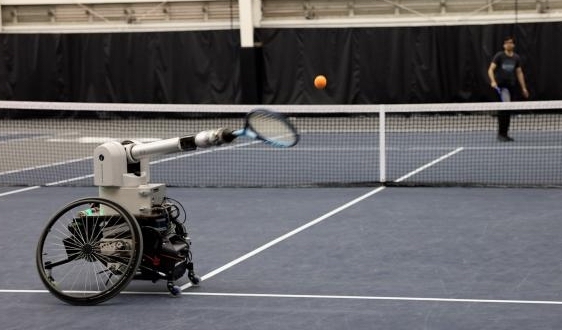 A tennis-playing, racket-swinging robot on wheels with full court tracking — finally, an opponent that never calls it quits!